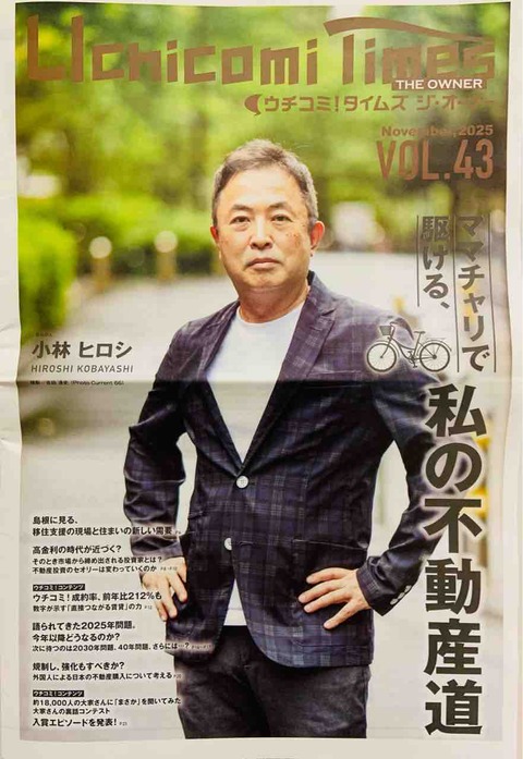 『ウチコミ!タイムズ ジ・オーナーVOL.43』が送られてくる。 表紙絵はママチャリ大家こと、小林ヒロシ氏。 ただ、今回取り上げるのは彼の特集で···