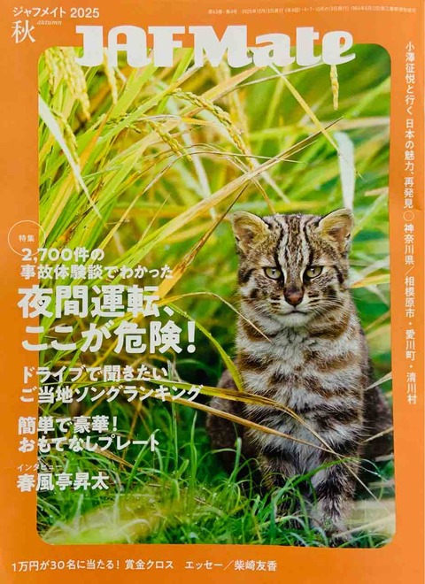 年4回発行される『JAFMate秋号』が届く。 毎回、この冊子が来るのを楽しみにしている。 表紙の動物の写真がまずイイ。 ツシマヤマネコ。長崎···